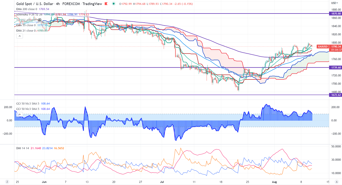 Gold price trades flat ahead of US CPI data. The yellow metal is supported by a weak US dollar and slight safe-haven demand due to geo-political tension between China and Taiwan. Economists predict slight easing in US CPI to 8.7% YOY from 9.1%.