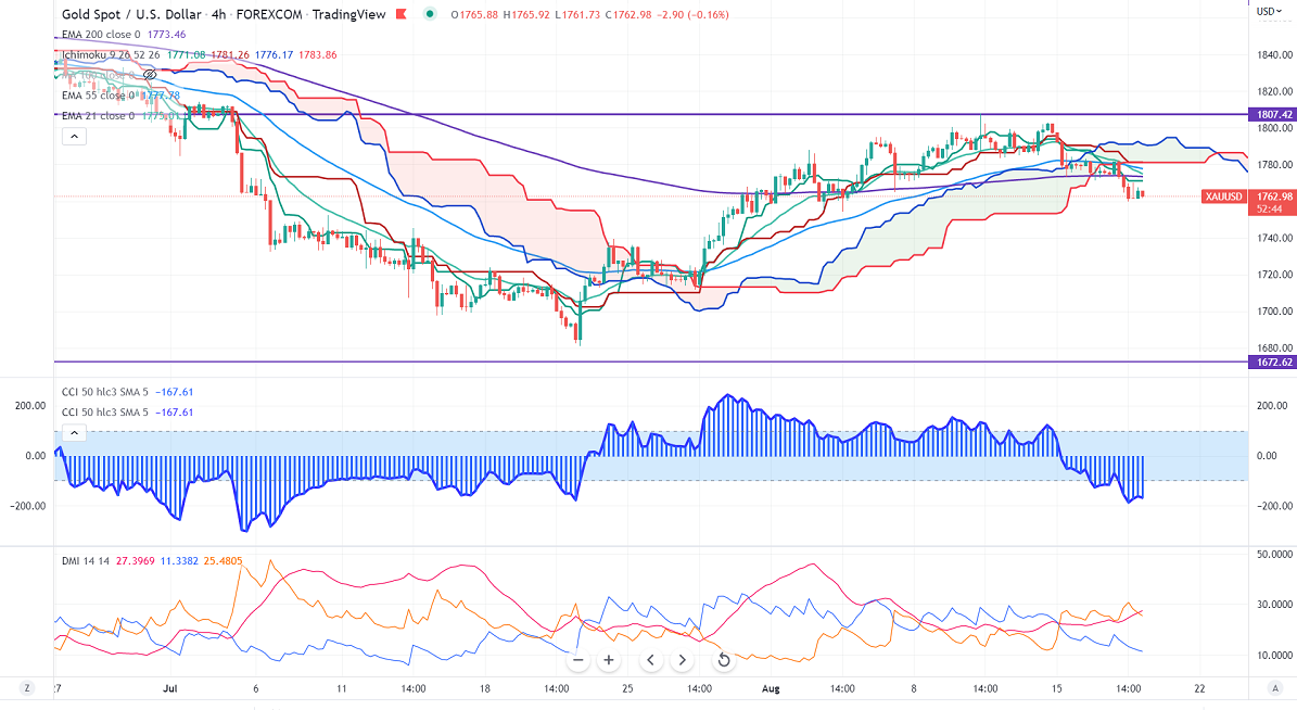 It is good to sell on rallies around $1771-72 with SL at around $1800 for TP of $1740.