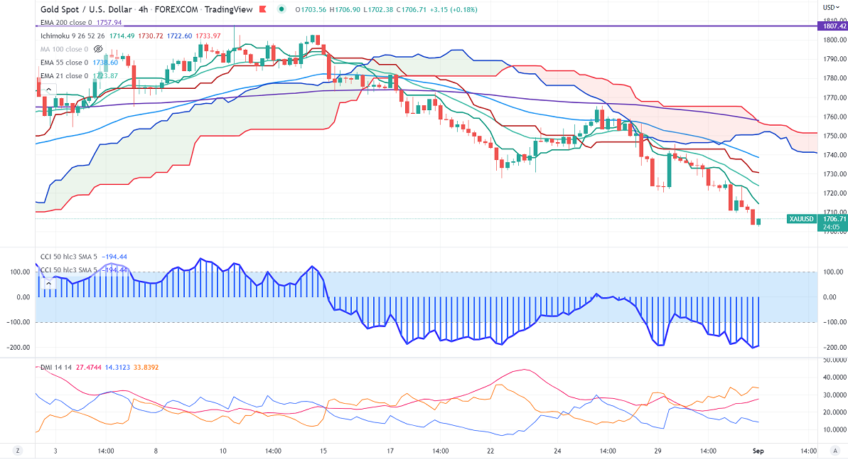 Gold price is trading lower despite the weak US dollar. Hawkish comments from major central banks put pressure on the yellow metal at higher levels. Eurozone consumer prices surged to 9.1% in August compared to a forecast of 8.9% also increasing the chance of a rate hike by the ECB.