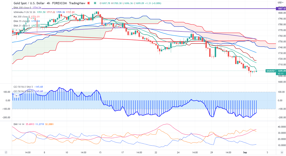 It is good to sell on rallies around $1728-30 with SL at around $1750 for TP of $1650.