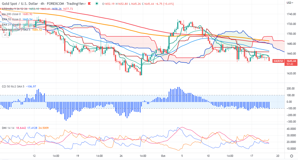 Gold pared some of its gains on strong US bond yields. Hawkish commentary from Minneapolis Fed pushing the yields further higher. The demand for riskier assets increased after UK Chancellor said the UK will roll back the previously announced tax cut plan.