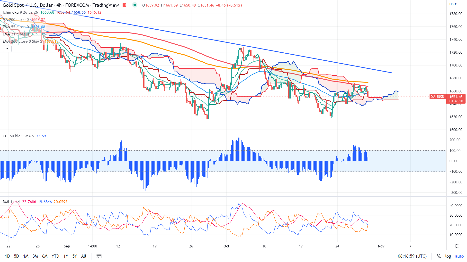 Gold is trading in a narrow range between $1674.93 and $1654.92 for the past three days. The European Central bank hiked interest rates for a second consecutive month by 75 bpbs and toughed its norms on TLTRO to banks.US GDP grew at an annual rate of 2.6% in Q3 compared to a forecast of 2.3%.