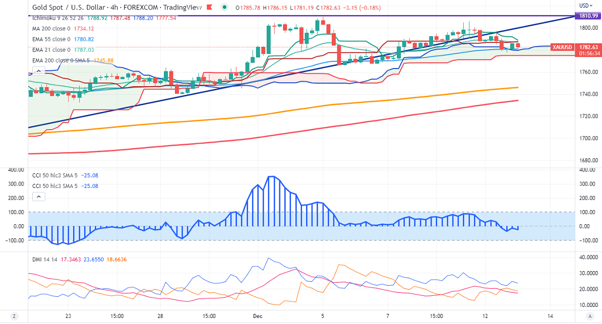 Gold declined more than $30 due to profit booking. Markets eye US CPI and FOMC monetary policy for further direction. The yellow metal hits a low of $1777.65 and is currently trading around $1782.40.