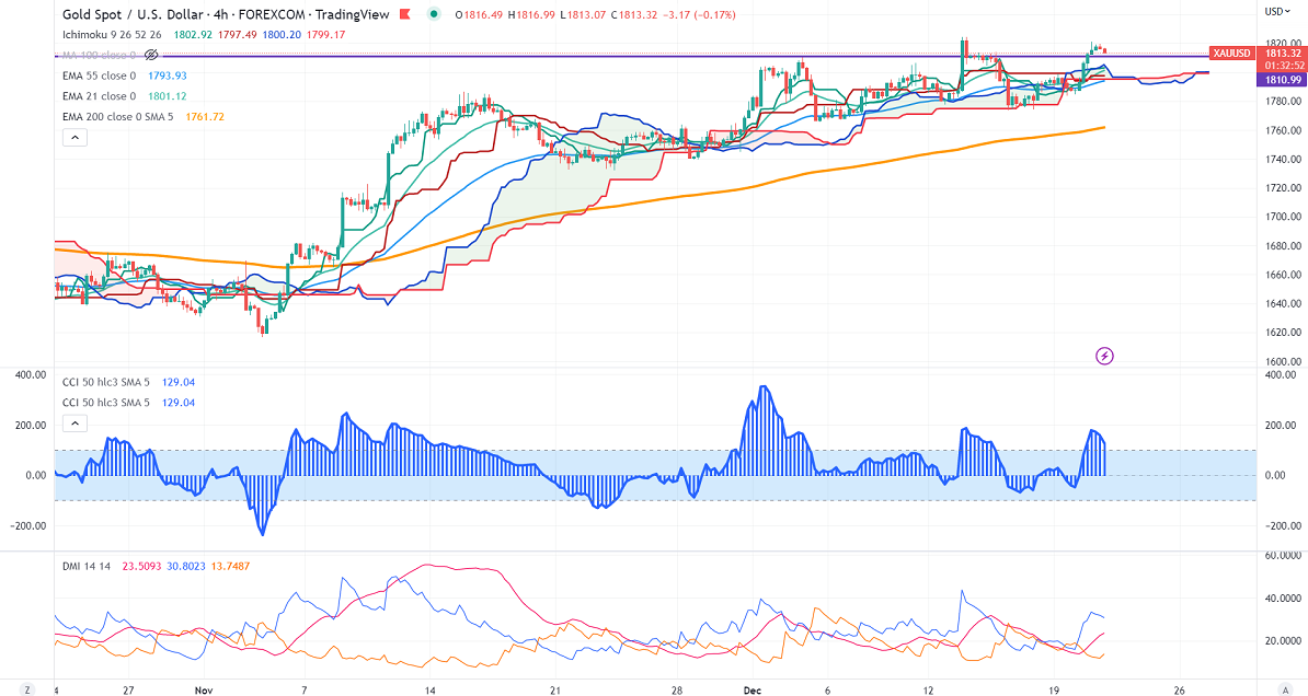 Gold climbed above $1800 on board-based US dollar weakness. The US dollar index lost more than 100 pips after a surprise move by the Bank of Japan. The sudden shift in bond yield control dragged the global stock market. The yellow metal hits a high of $1821.16 and is currently trading around $1814.15