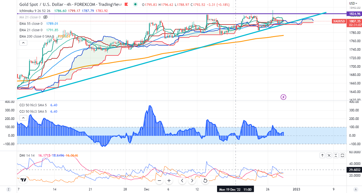 Gold regained above $1800 on weak US pending home sales. It fell for the sixth month in Nov to 73.9 last month, the lowest level since 2001. The yellow metal is also boosted by the weak US dollar and strong crude oil prices. The yellow metal hits a high of $1809.48 and is currently trading around $1807.45.