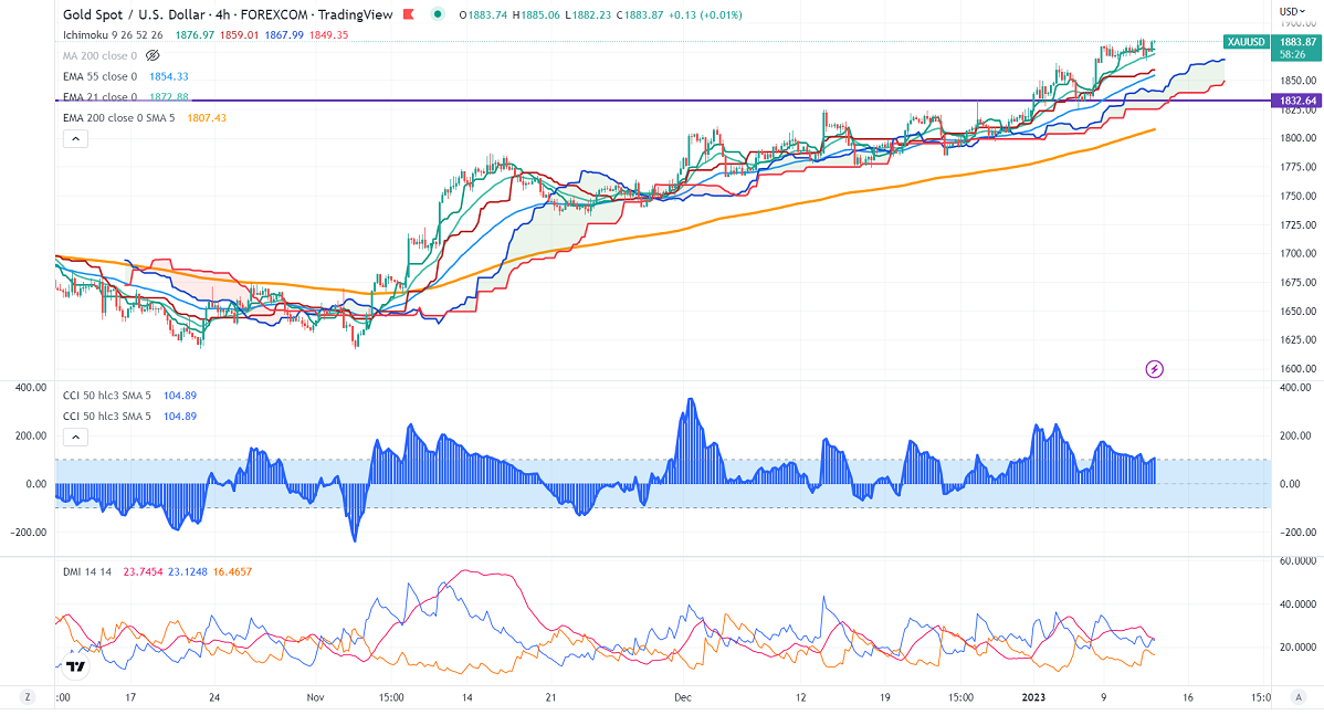 Gold trades flat ahead of US CPI data. Any weak inflation numbers will push gold prices higher. Gold hits an intraday high of $1885.06 and is currently trading around $1883.82.