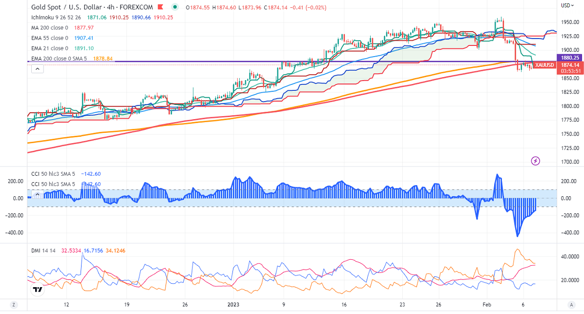 Gold formed a double bottom near $1860 and showed a minor pullback. Markets eye US Fed Chairman Powell's speech today for further direction. Any hawkish comments from Fed Chairman will dag gold prices lower to $1850. The yellow metal was one of the worst performers the previous week on upbeat US jobs data. It hits a low of $1863.13 yesterday and is currently trading around $1874.67.