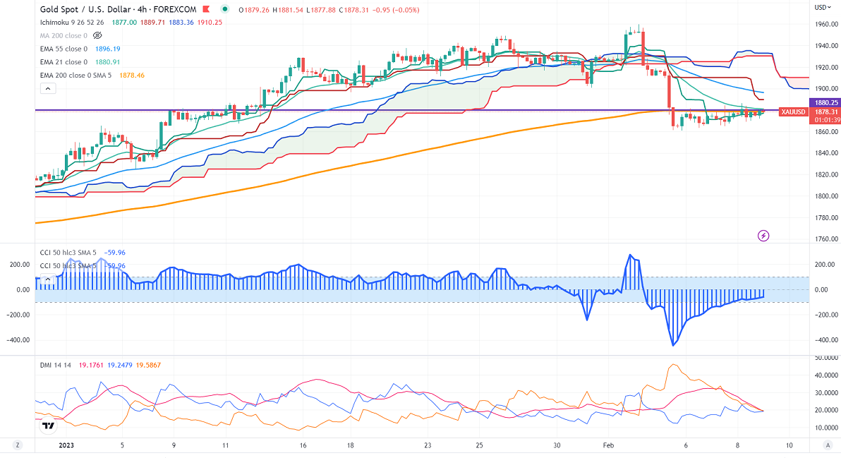 Gold consolidating in a narrow range between $1886.50 and $1869 for the past three trading days. Fed speaker Willams delivered a hawkish outlook on monetary policy. He said that the central bank should continue to hike rates to bring inflation down. It hits an intraday low of $1869 and is currently trading around $1878.20.