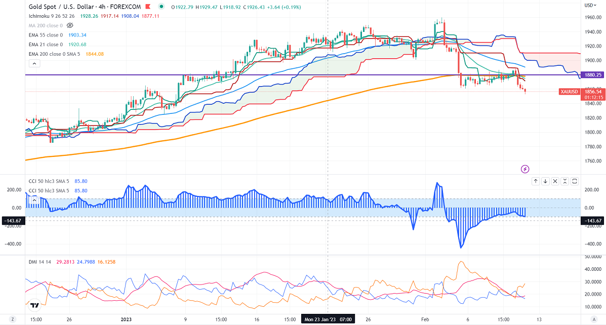 Gold lost its shine due to the strong US dollar. The US dollar index gained momentum after hawkish comments from Fed speakers Williams and Barr. It hits an intraday low of $1852.51 and is currently trading around $1853.45.