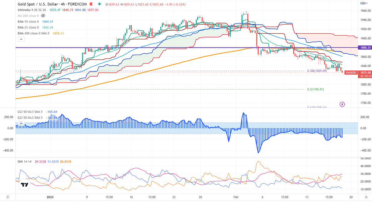 Gold prices extended their bearish mode following the release of hot US PPI data. The producer price index rose to 6% YoY, well above an estimated 5.6%. The inflation for the month of Jan increased by 0.70% monthly basis vs an estimated 0.20%. It hits a fresh February low of $1826.08 and is currently trading around $1826.81.