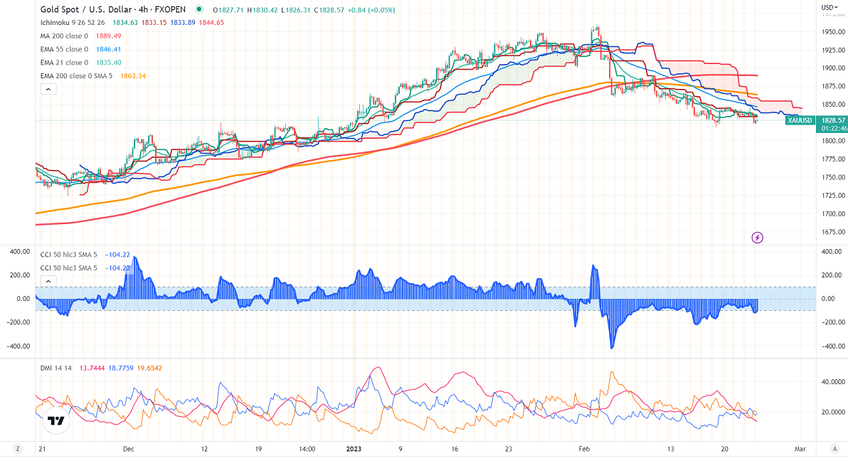 Gold prices declined after hawkish FOMC meeting minutes. The minutes showed that "almost all participants agreed that it was appropriate to raise the target range for the federal funds rate 25 basis points at this meeting." Some members also favored a 50 bpbs rate hike. It hits a low of $1823 and is currently trading around $1827.95.