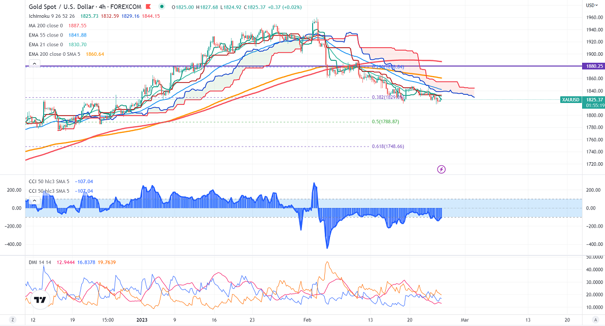 Gold prices have shown a minor pullback as US GDP misses estimates. The economy expanded at an annual pace of 2.7%, slightly lower compared to an estimate of 2.9%. The report said that core inflation surged to 4.3% in the fourth quarter vs. the forecast of 3.9%. It hits an intraday high of $1825.71 and is currently trading around $1825.90.
