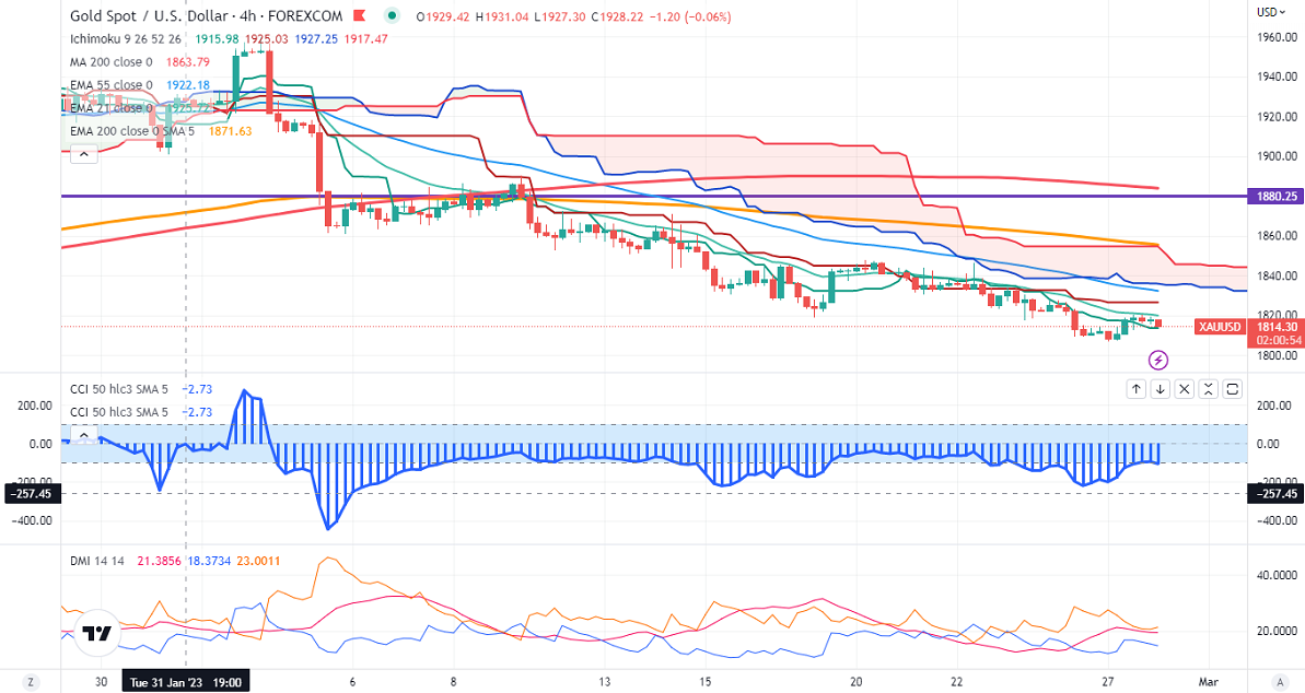 Gold prices showed a minor pullback on short covering. The US dollar index declined below the 105 level after weak US durable goods orders. It hits an intraday low of $1814 and is currently trading around $1814.30.