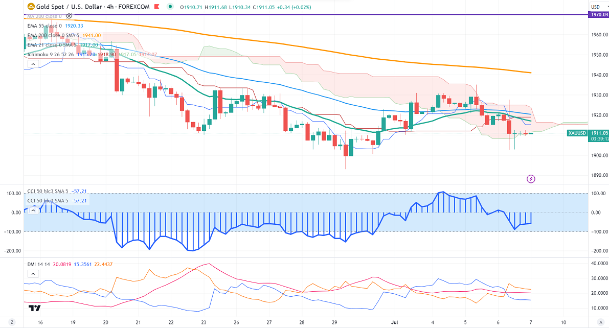 Gold prices pared some of their gains after US ADP jobs data. It hits a low of $1902.50 and currently trading around $1911.12.