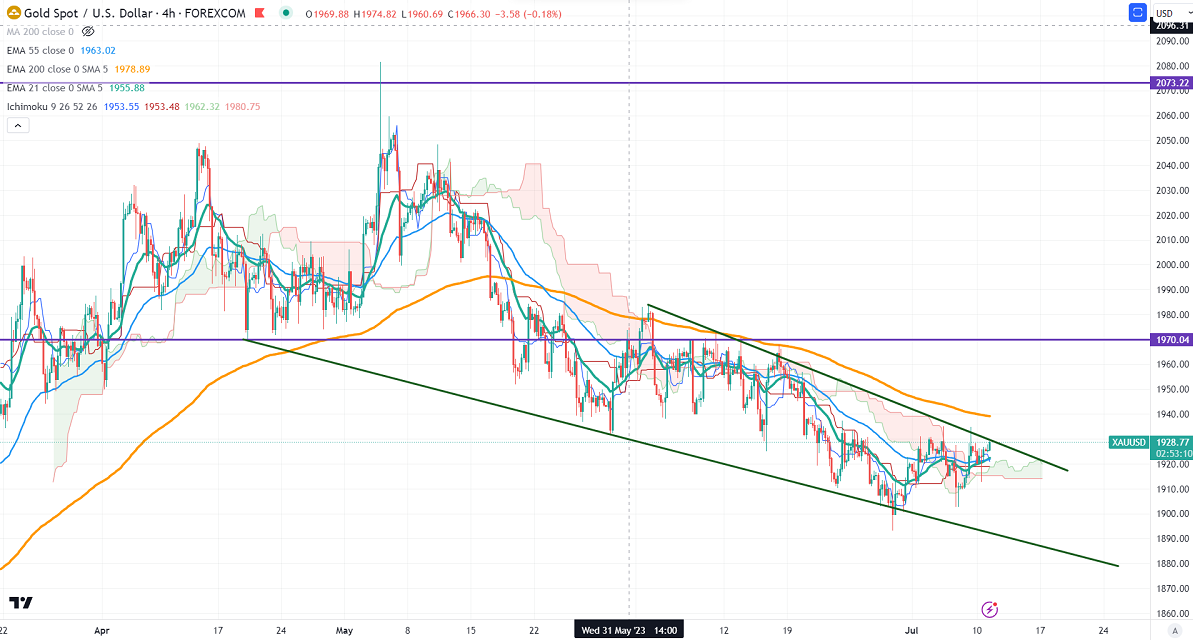 Gold prices showed a minor pullback on the weak US dollar. It has lost its momentum after weak US Non-farm payroll data. Hawkish comments from Fed San Francisco Mary Daly and Cleveland President Meser preventing yellow metal from further upside. It hits an intraday high of $1927.89 and currently trading around $1927.09.