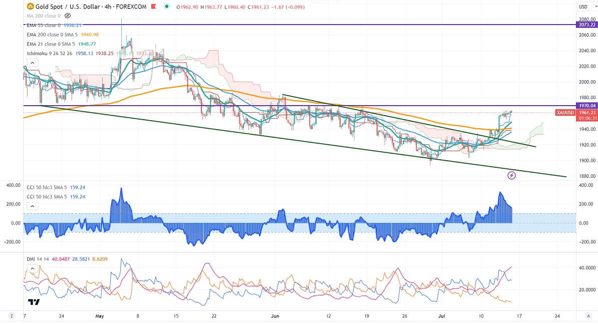 Gold prices hold above the $1960 level despite weak US PPI. The Producer prices for the month dropped to 0.10% YoY, compared to a forecast of 0.40%. Core PPI m/m declined to 0.10% vs the forecast of 0.20%. It hits a high of $1963.42 and currently trading around $1960.69.