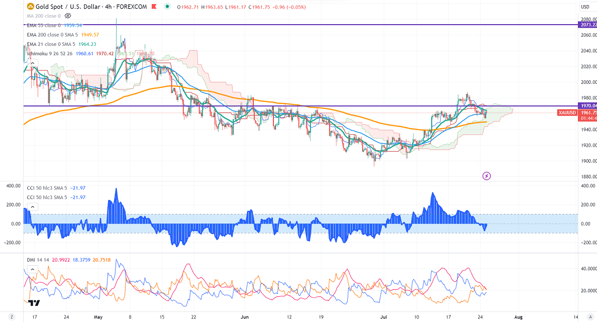 Gold prices showed a minor pullback after a massive sell-off. It hits a low of $1953.30 and currently trading around $1962.03.