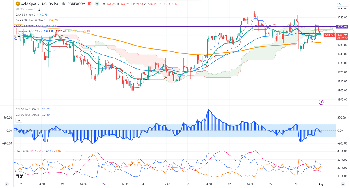 Gold showed a nice pullback amid the weak US dollar. It hits a high of $1972 and is currently trading around $1960.96.