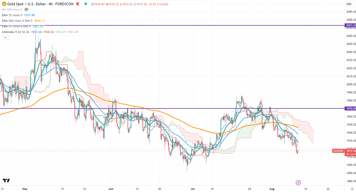 Gold lost its shine due to the strong US dollar. It hits a low of $1914.35 yesterday and is currently trading around $1918.38.