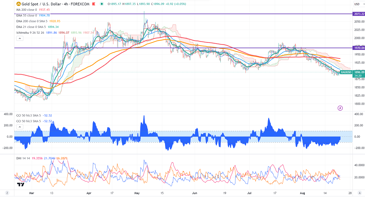 Gold showed a minor pullback after hitting a multi week low. It hits a low of $1898.80 yesterday and is currently trading around $1895.70.