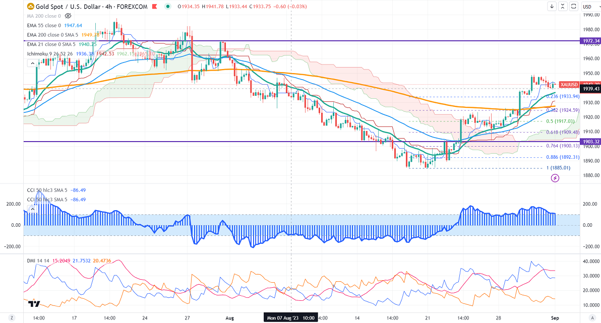 Gold trades flat ahead of US nonfarm payroll data. It hit a high of $1949.07 and is currently trading around $1942.46
