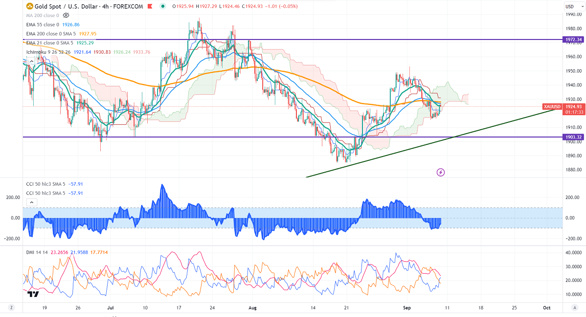 Gold showed a minor pullback despite strong US job data. It hit a high of $1927.27 yesterday and is currently trading around $1925.04.