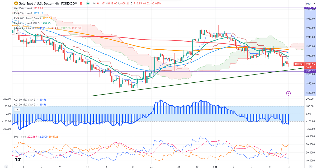 Gold lost its shine ahead of US inflation data. It hit a low of $1907 and is currently trading around $1911.94.