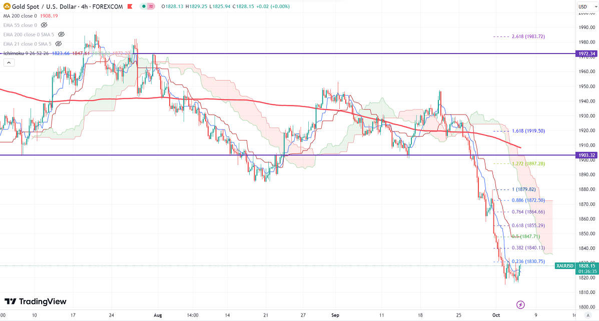 Gold showed a minor pullback as the US treasury yield eased. It hit a high of $1829.06 yesterday and is currently trading at around $1829.02.