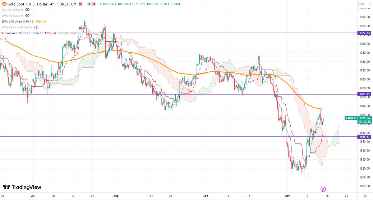 Gold lost its shine after upbeat US inflation. It hit a high of $1885.10 yesterday and is currently trading at around $1874.29.