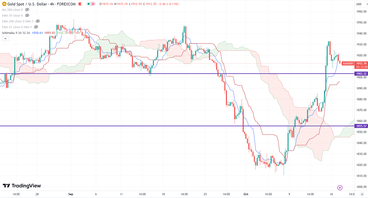 The gold price showed a minor profit booking yesterday after a sharp rally of more than $100. It hit a low of $1908.24 and is currently trading at around $1913.80.