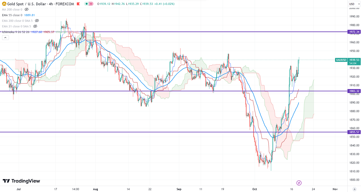 The gold price showed a nice pullback despite strong US retail sales. It hit a high of $1942.75 and is currently trading at around $1938.14.