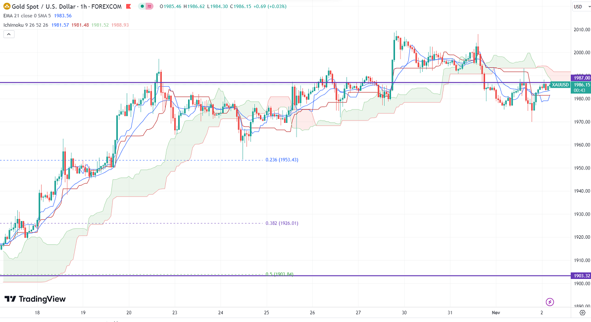 Gold pared some of its gains after Fed monetary policy. It hit a low of $1969.91 yesterday and is currently trading around $1985.77.