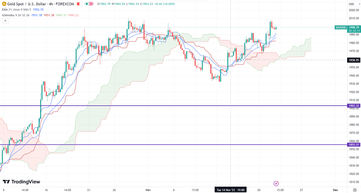 Gold pared some of its gains after the FOMC meeting minutes. It hit a high of $2007 and is currently trading around $1995.