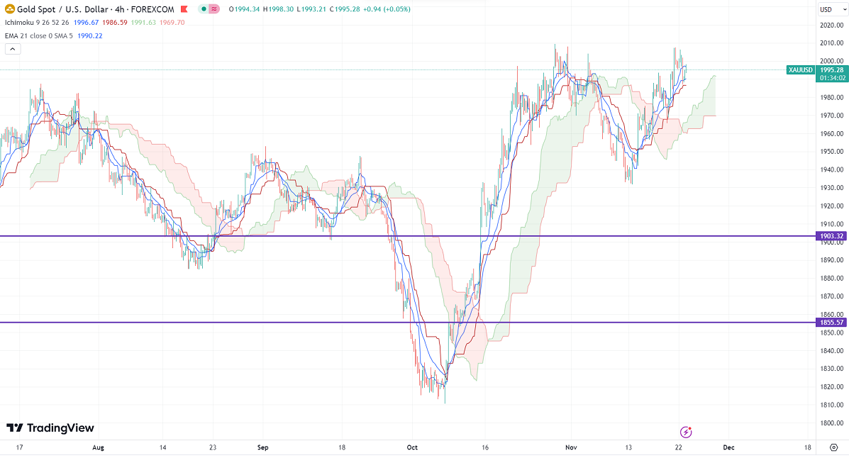 Gold trading higher on board-based selling. It hit a high of $2006.38 yesterday and is currently trading around $1994.69.