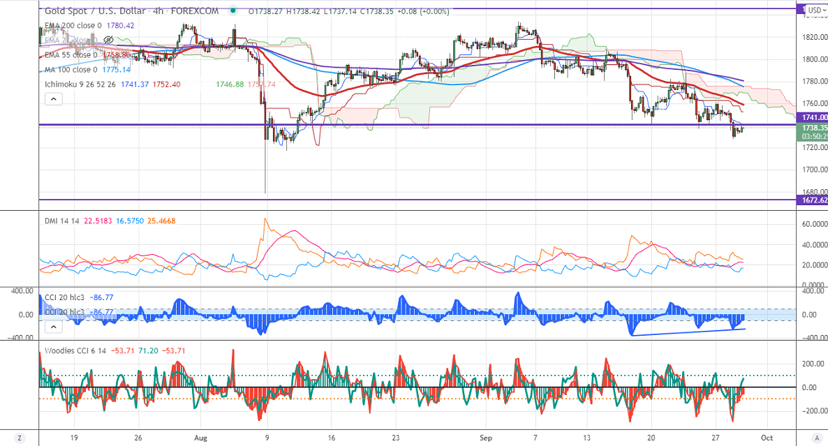 Gold is trading below a significant support level of $1740 on US dollar strength. The US treasury yield surged after Janet Yellen. She said that government would run out of cash by Oct 18th if Congress fails to raise the debt ceiling. The overall trend is still on the downside as long as resistance $1835 holds. The factors dragging the gold prices are