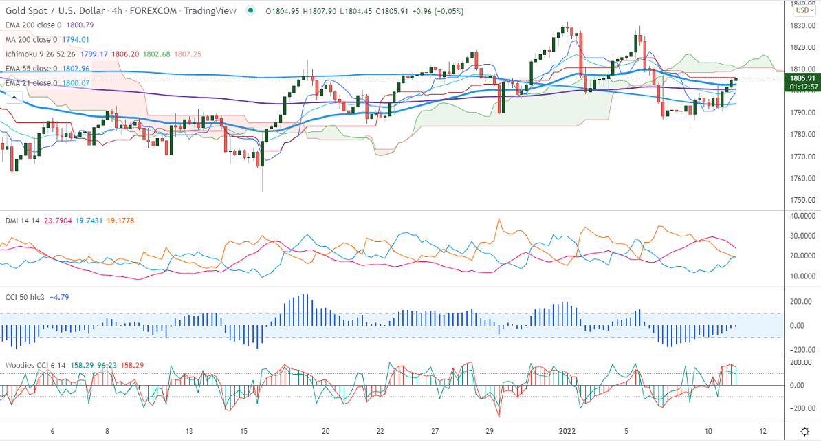 Gold regained above the $1800 level on the weak US dollar. Markets eye US Fed chairman testimony for further direction. The US dollar index is holding below 96 levels despite hawkish Fed and surging yields. The minor sell-off in US treasury yield supports the yellow metal at lower levels. Gold hits an intraday high of $1807 and is currently trading around $1805.89.