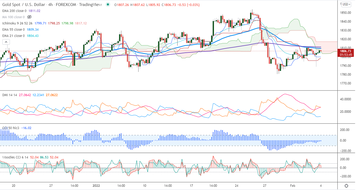Gold is holding above $1800 on US dollar weakness. The US dollar index lost its shine after hawkish ECB monetary policy. The central bank has kept its rates unchanged and to hike in Dec22 and Mar23. The hawkish surprise from the Bank of England also put pressure on yellow metal at higher levels. Markets eye US Non-farm payroll data for further direction. Gold hits an intraday high of $1807.85 and is currently trading around $1806.61.
