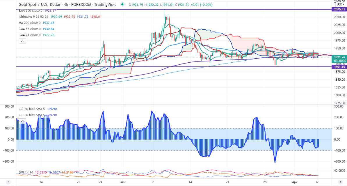 Gold has lost its shine after the FOMC member speech. Hawkish comments from Fed Governor Lael Brainard and San Francisco Fed President Mary Daly have dragged the yellow metal by more than $20.Markets eye US Fed meeting minutes for further direction. US 10- year yield hits year high in hopes of an aggressive rate hike. The yellow metal hits an intraday low of $1920.57 and is currently trading around $1921.08.