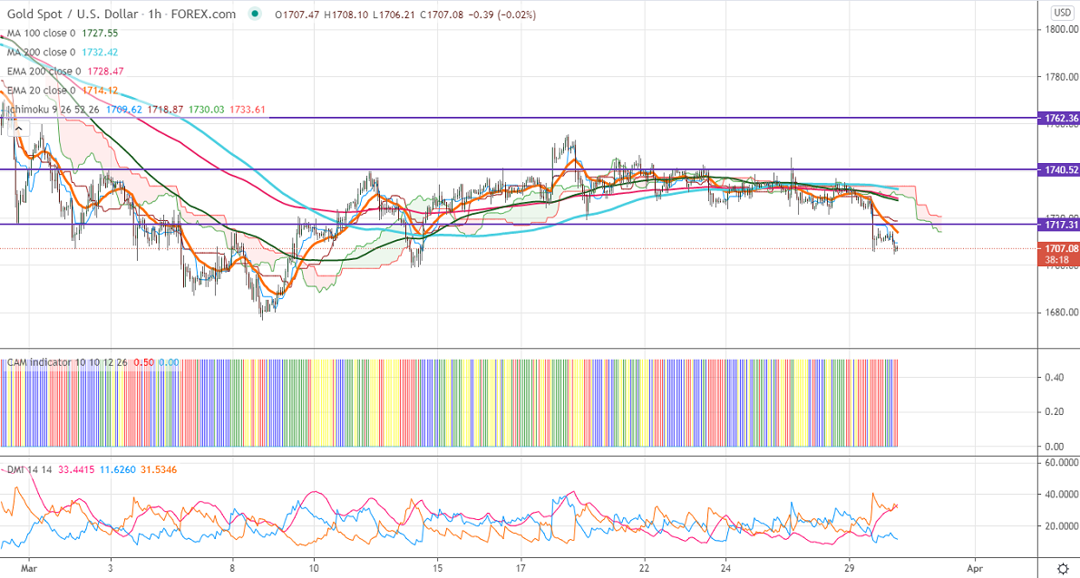 It is good to sell on rallies around $1710-11 with SL around $1725 for the TP of $1675/$1650.