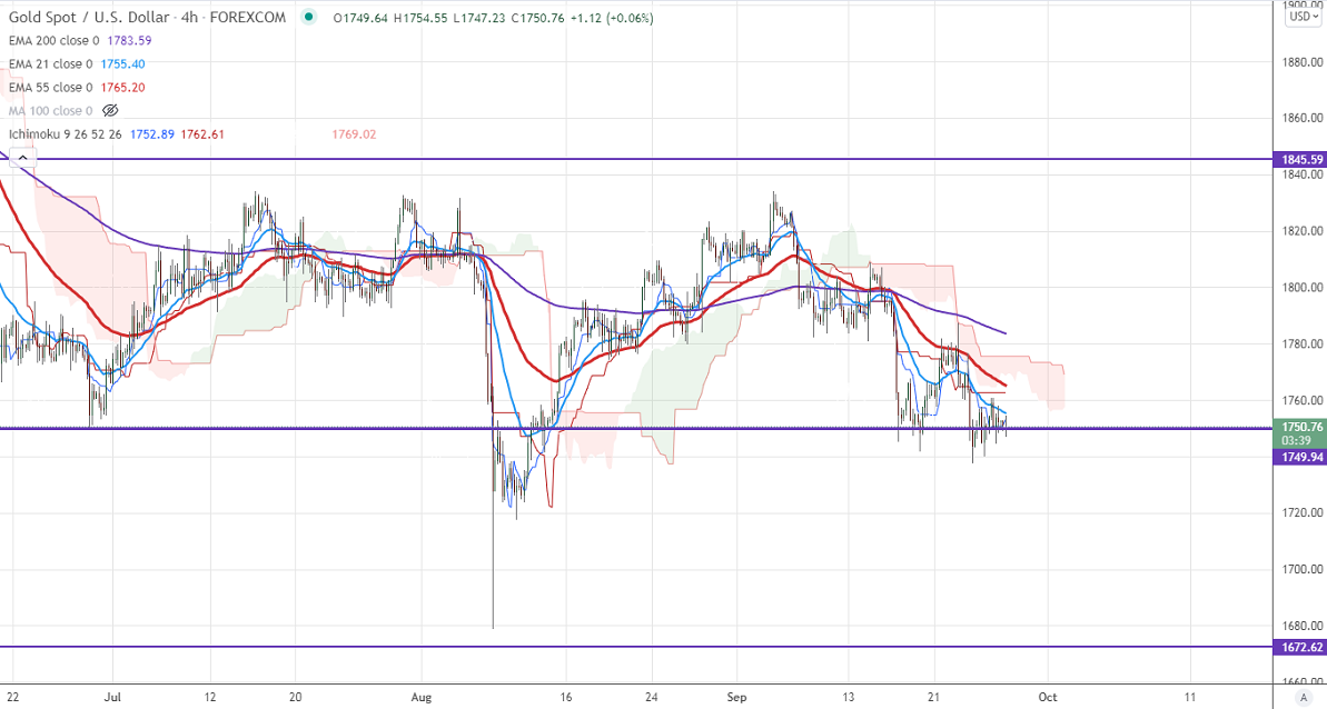 Gold is consolidating after hitting a low of $1740. The overall trend is still on the downside due to the strong US dollar. The factors dragging the gold prices are