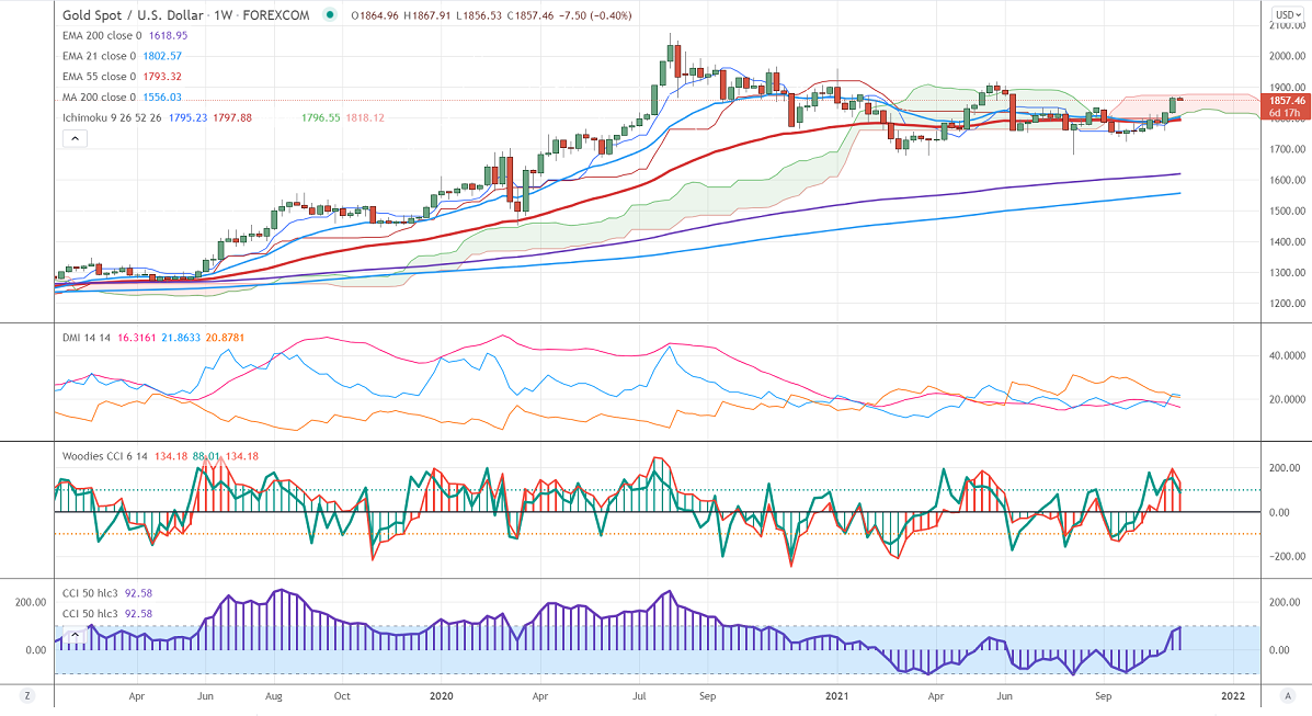 It faces strong support at $1840 violation below targets $1820/$1798/$1780. Significant trend continuation only below $1675. The yellow metal is holding above $1870, a jump till $1900/1915 is possible.