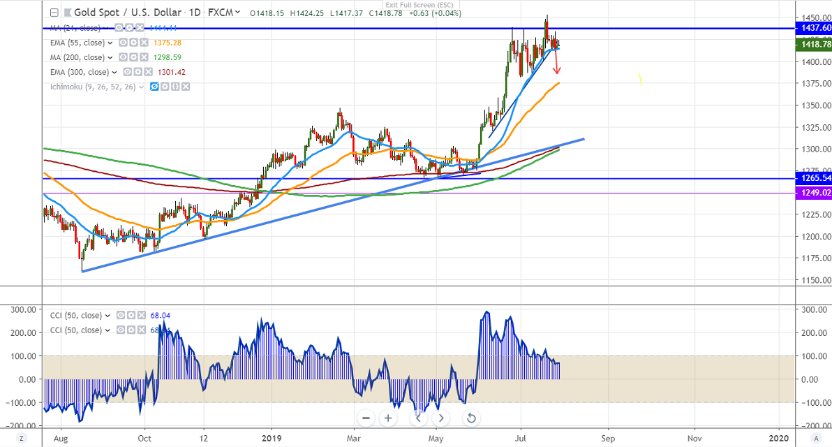 The yellow metal is facing strong resistance around $1440 and any break above targets $1452. Bullish continuation only above $1452. The minor resistance is around $1425/$1434.