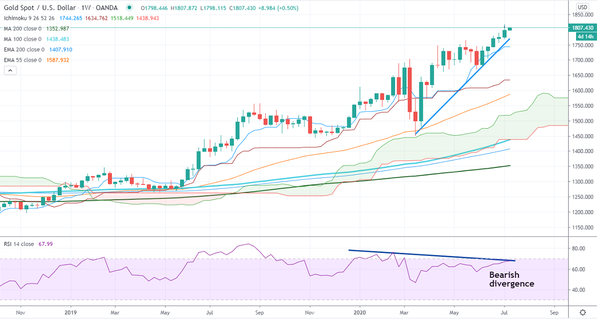 Gold is trading higher for the past five weeks and jumped more than $100 on safe-haven demand. US PPI declined unexpectedly to -0.2% compared to a forecast of 0.4%. The annual inflation falls by -0.8% much below the estimate of 0.2%. Globally total number cases crossed 13 million with deaths around 571112.