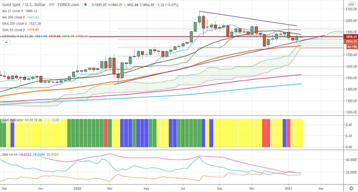 Gold recovered sharply more than $50 in the previous week on the weak US dollar. DXY is struggling to break above 91 levels; any dip below 90 confirms a bearish continuation. The slight profit booking in the US 10-year yields amid stimulus and surge in coronavirus cases.