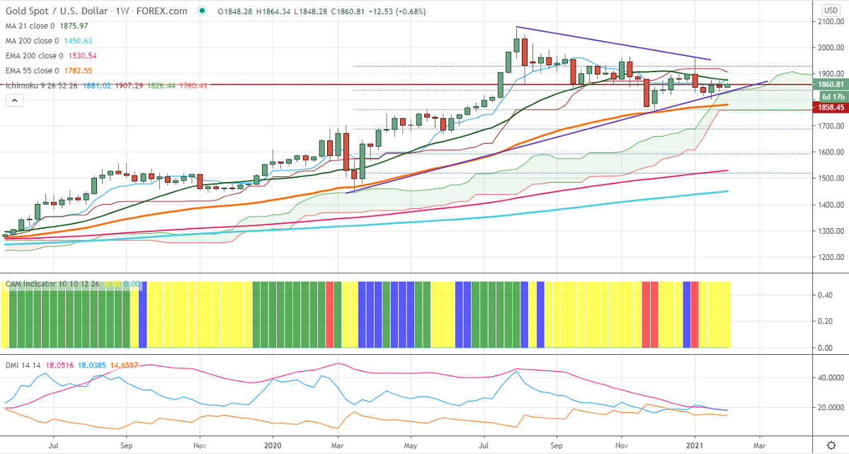 Gold is trading in a narrow range between $1875 and $1831.48 for the past two weeks. The huge roller coaster ride in US markets on volatile retail trading due to GameStop's share has increased demand for safe-haven assets. The US volatility index rose more than 50% in the previous week due to. DXY is trading steadily above 90 levels; any jump above 91 confirms a bearish continuation. The slight recovery in the US 10-year yield is putting pressure on the yellow metal at higher levels.