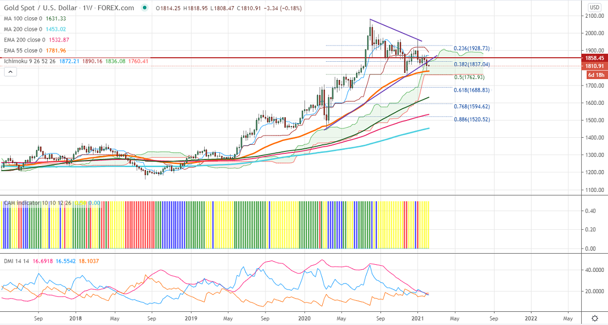 The pair faces strong support at $1780 (55-W EMA), violation below targets $1764/$1720. On the higher side, near term resistance is around $1822, any indicative break above that level will take till $1882/$1875.