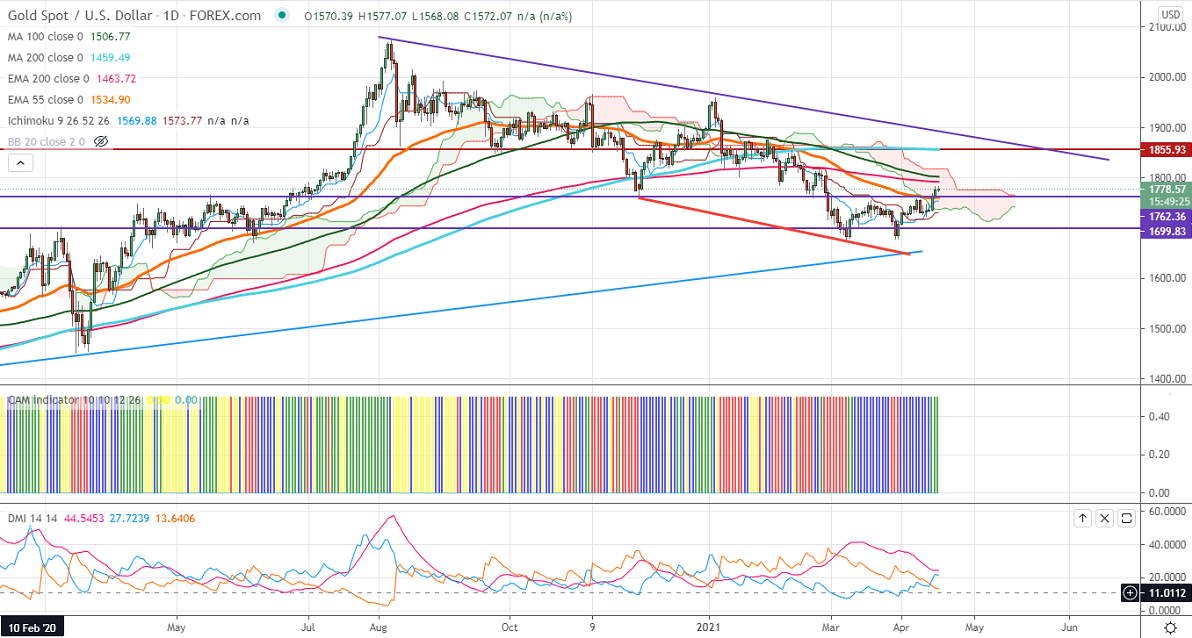 Gold continues to trade higher and jumped more than $50 on broad-based US dollar weakness. The slight selling in US bond yield also supporting the yellow metal at lower levels. DXY has shown a minor recovery after hitting a low of 91.48. US 10-year yield lost more than 14% from temporary top 1.774%.
