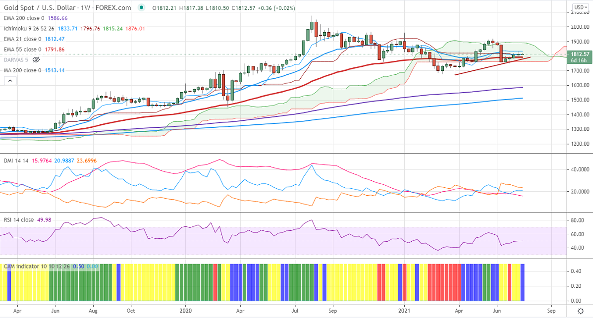 It is facing strong support at $1780, violation below targets $1760/$1740/$1720/$1700. Significant trend continuation only below $1675. On the higher side, near-term resistance is around $1836, any convincing break above will take the yellow metal $1860/$1900 is possible.