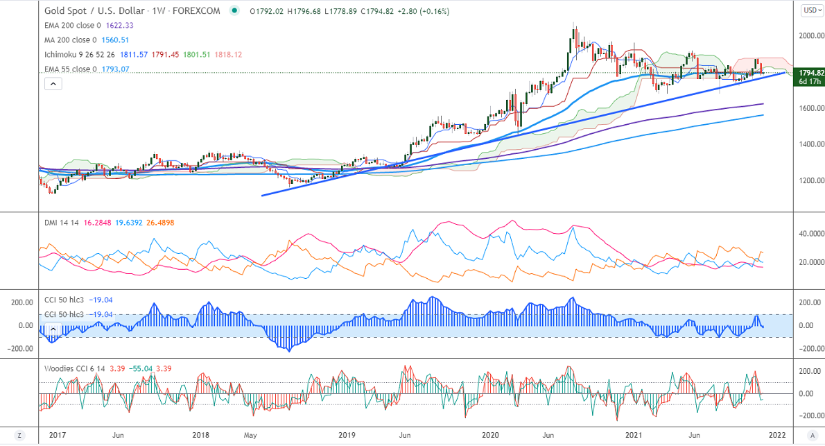 Gold recovered more than $30 from a multi-week low of $1778 as investors got panic due to the new coronavirus Omicron. The demand for safe-haven assets like yen, gold has increased as the chance of reinfection is higher. The US 10-year yield tanked nearly 10% on concerns of the new variant. The minor pullback in the US dollar index is putting pressure on the yellow metal at higher levels. It hits a high of $1815.59 and is currently trading around $1793.35.