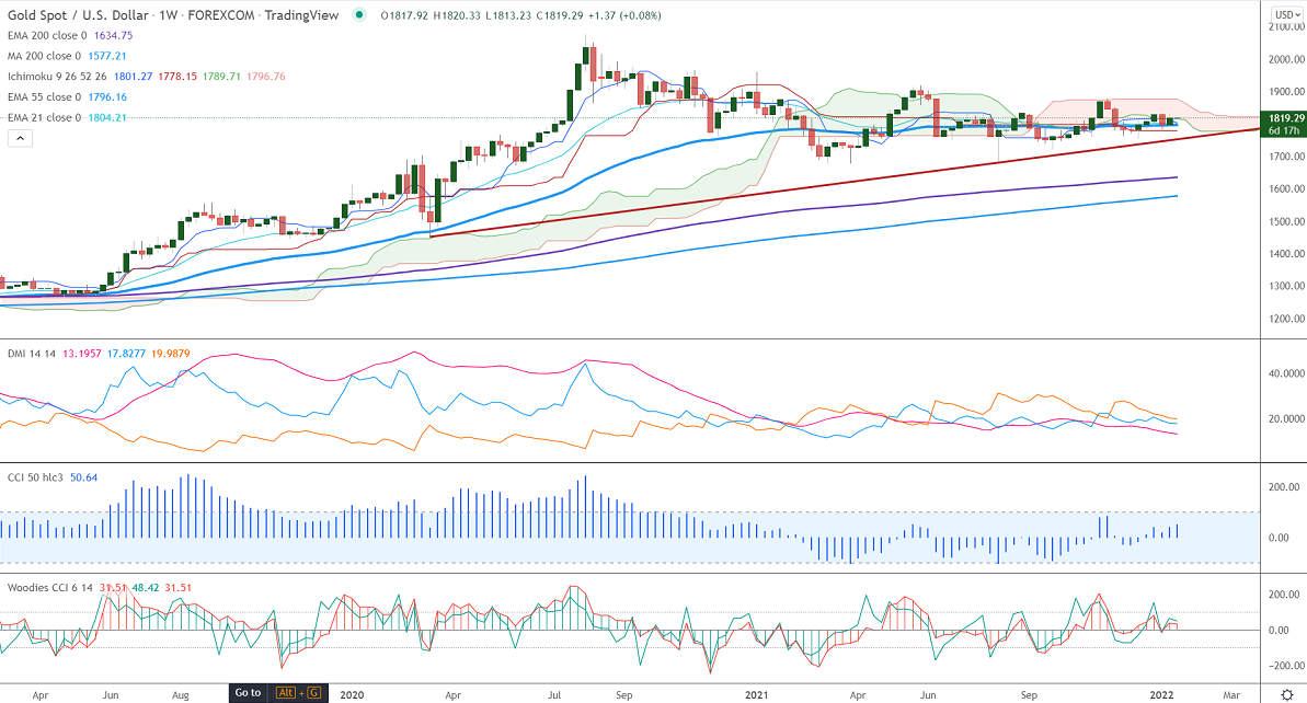 Gold is holding above $1800 on the weak US dollar. The yearly inflation surged by 7%, the highest level since June 1982. The US dollar index hits multi-week lows at 94.62 despite the hawkish Fed. It regained above 95 level due to catch up in US treasury yields. Gold hits an intraday high of $1820.21 and is currently trading around $1820.